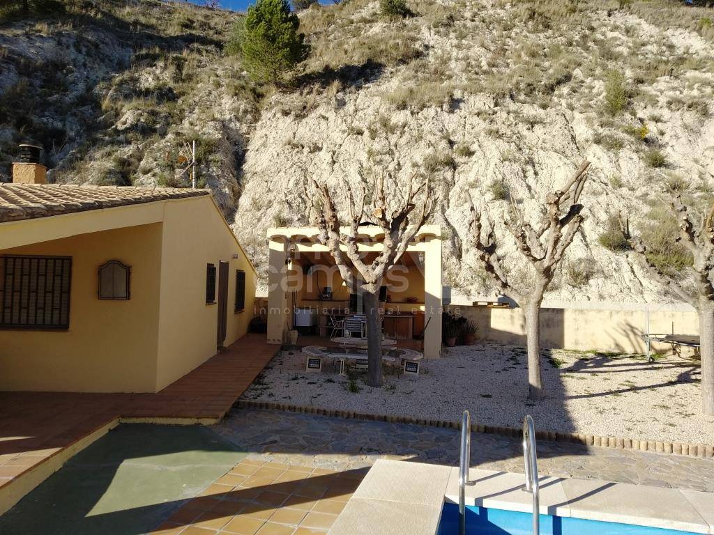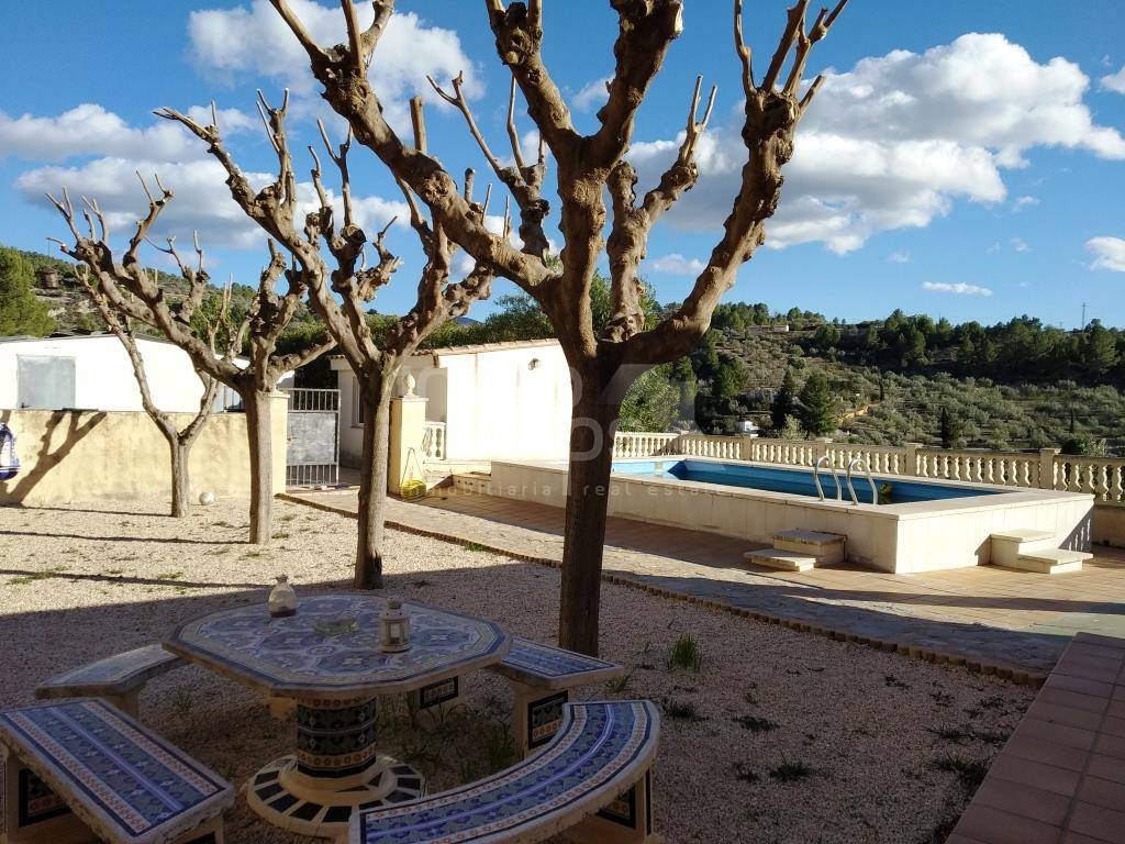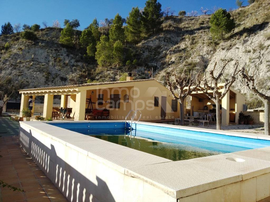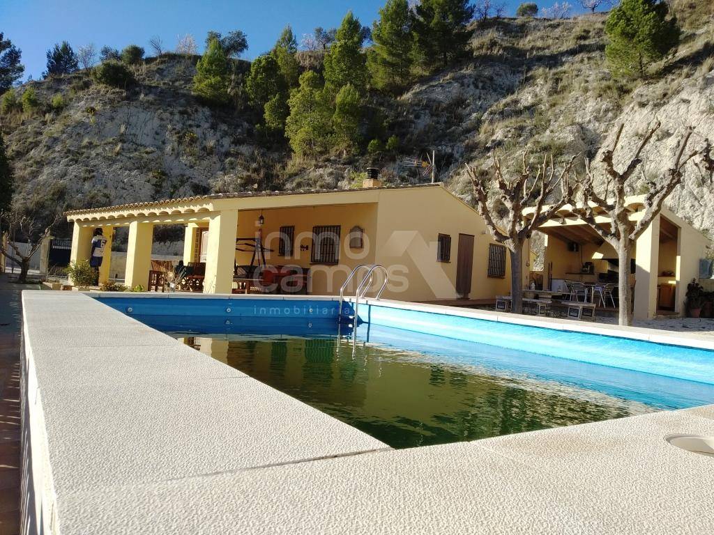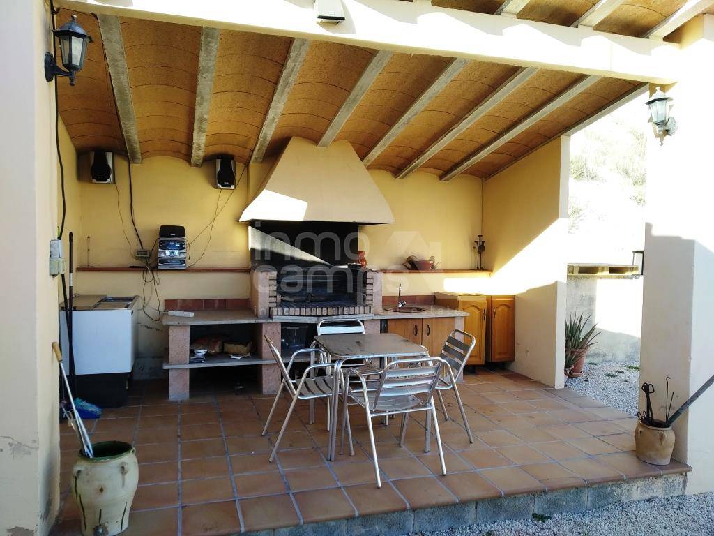 Casa de campo en Cocentaina de 120m² aprox. se distribuye en 3 habitaciones, salón-comedor con estufa de leña y aire acondicionado, baño, cocina completamente reformada y amplia pérgola delantera y trasera. La propiedad tiene como anejos una nave de unos 100m² aprox que se usa como trastero, granja, cuarto de lavado y gimnasio. También cuenta con zona de parking, aseo exterior, barbacoa y piscina. Dispone de agua potable, luz, pozo, pavimento de gres, ventanales de aluminio y rejas, chimenea y aire acondicionado. La parcela es de 16,187m² aprox. plantada de olivos y zona ajardinada, situada en una zona soleada, con buenas vistas y acceso asfaltado.