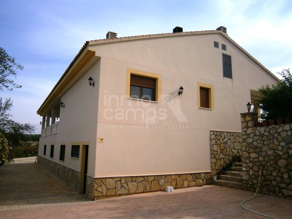 Casa de campo en L'Alqueria de Aznar de reciente construcción, cuenta con 500m² construidos en dos plantas. La planta baja consta de: pérgola de entrada a la vivienda, salón-comedor con estufa de leña, cocina completamente equipada, cuarto de lavado, 3 dormitorios dobles, dormitorio principal con baño en-suite y vestidor. Amplia pérgola trasera con inmejorables vistas al valle. Mediante una escalera interior se accede a la planta semisótano que en la actualidad cuenta con un baño y el resto es un amplio garaje, el cual fácilmente se puede convertir en más espacio habitable. Pavimento de gres, ventanales de aluminio color madera con cristales tipo climalit. El exterior lo forma el jardín, perfectamente ornamentado y distribuido, sobre una parcela de 8,781m² aprox. Vallada alrededor de la casa, tiene puerta de acceso automatizada, bonita piscina privada de 10x5m. Dispone de agua agrícola, luz y calefacción a gasoil.