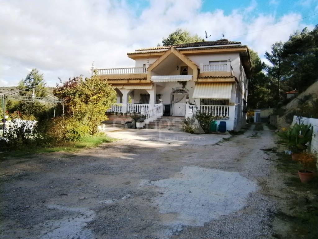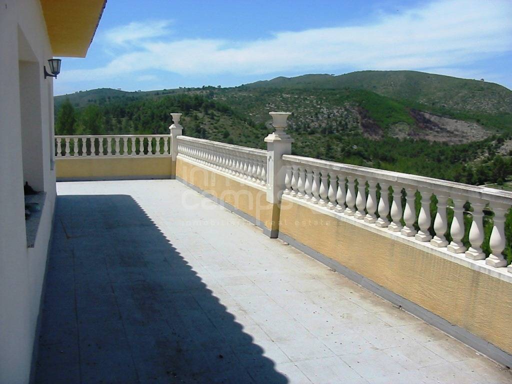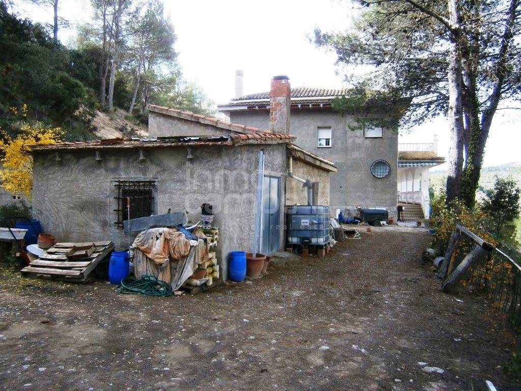 Casa de campo a las afueras de Alcoy, situada en pleno parque natural de la Sierra de Mariola. Cuenta con una superficie construida de 337m² en dos plantas. La planta baja está distribuida amplia pérgola de acceso completamente, cuarto de lavado, 2 dormitorios, baño, cocina y amplio salón comedor con chimenea. La planta primera dispone de 4 habitaciones, baño familiar, cocina, amplio comedor y terraza con excelentes vistas a la montaña. Esta parte de la casa necesita ser terminada. La parcela es de 11.037m² se encuentra vallada parcialmente, tiene puerta de acceso automatizada. Como anejos cuenta con un trastero y garaje. Dispone de agua, luz, chimenea, calefacción a gasoil y ventanales de aluminio con acristalamiento climalit. Se encuentra situada en una zona muy tranquila, con muy buenas vistas, acceso asfaltado y a tan solo 8 km del pueblo.