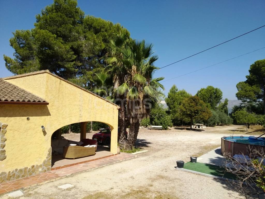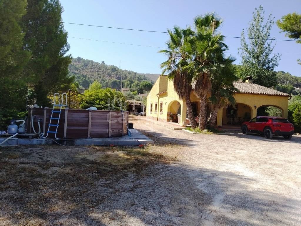 Casa de campo a las afueras de Ontinyent con una superficie construida de 140m² en planta baja. La casa está distribuida en: amplia pérgola de acceso, 3 dormitorios, baño, cuarto de lavado, cocina completamente equipada y amplio salón comedor con chimenea y aire acondicionado. La parcela es de 3.918m² se encuentra parcialmente vallada, tiene puerta de acceso automatizada. Como anejos cuenta con una barbacoa y una construcción auxiliar de 50 m² utilizada como trastero. Dispone de agua, luz, aire acondicionado, chimenea, internet, calefacción eléctrica y ventanales de aluminio con cristal climalit y rejas. Se encuentra situada en una zona muy tranquila y soleada, con muy buenas vistas, acceso asfaltado y a tan solo 3 km del pueblo.