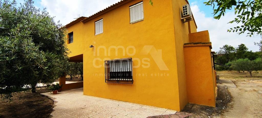 Casa de campo a las afueras de Ontinyent con una superficie construida de 130m² en dos plantas. La planta baja está distribuida amplia pérgola de acceso, 2 dormitorios, baño, cocina y salón comedor con chimenea y aire acondicionado. La planta primera dispone de un dormitorio y el resto es abierto. La parcela es de 1,191m² se encuentra plantada de olivos. Como anejos cuenta con un garaje cerrado. Dispone de agua, luz, agua de riego, aire acondicionado y chimenea. Se encuentra situada en una zona soleada, con muy buenas vistas, acceso asfaltado y a tan solo 500m del pueblo.