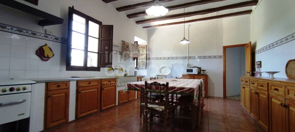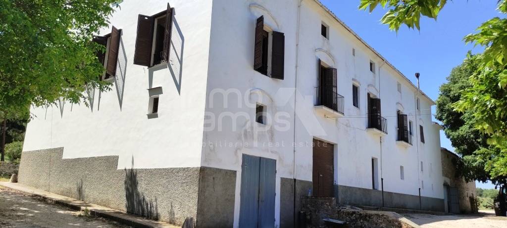 Espectacular masía tradicional construida a mediados del siglo XVIII, la superficie construida es 1.888 m² sobre una parcela de 58.710m², situada a las faldas del parque natural de la Sierra de Mariola y a solo 4.5km de Bocairent. La casa principal cuenta con tres plantas, en la planta baja consta de: amplio zaguán de entrada con biblioteca y sala de estar con chimenea. La planta primera se distribuye en siete dormitorios, cuatro baños, despacho, amplia cocina, despensa, cuarto de lavado y plancha, comedor, salita y terraza. La planta superior cuenta con seis dormitorios, trastero y amplia buhardilla, la cual fácilmente se puede habilitar como más espacio habitable. La casa de guardeses, necesita reforma, cuenta con dos alturas y gran patio interior descubierto. En la parte trasera de la finca, se encuentran los almacenes, garajes y antiguas caballerizas. La finca se encuentra situada en una zona de fácil acceso, muy tranquila, rodeada de campos de cultivo y de naturaleza. La propiedad cuenta con luz, agua de nacimiento, balsa de riego y plantación de olivos y árboles frutales. Excelente potencial para albergar negocio rural.