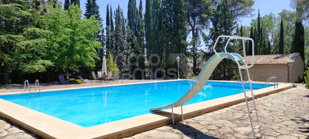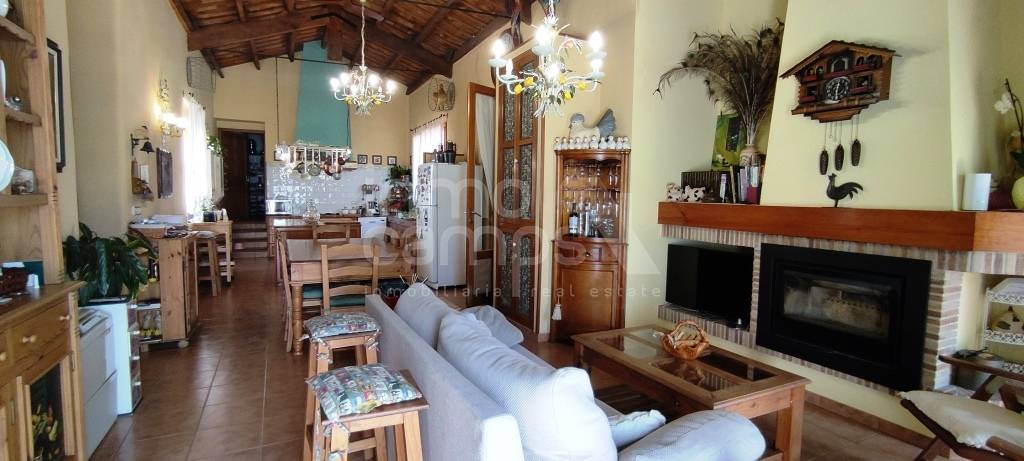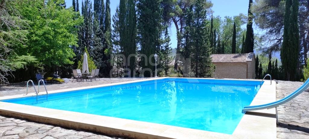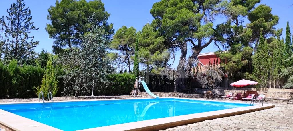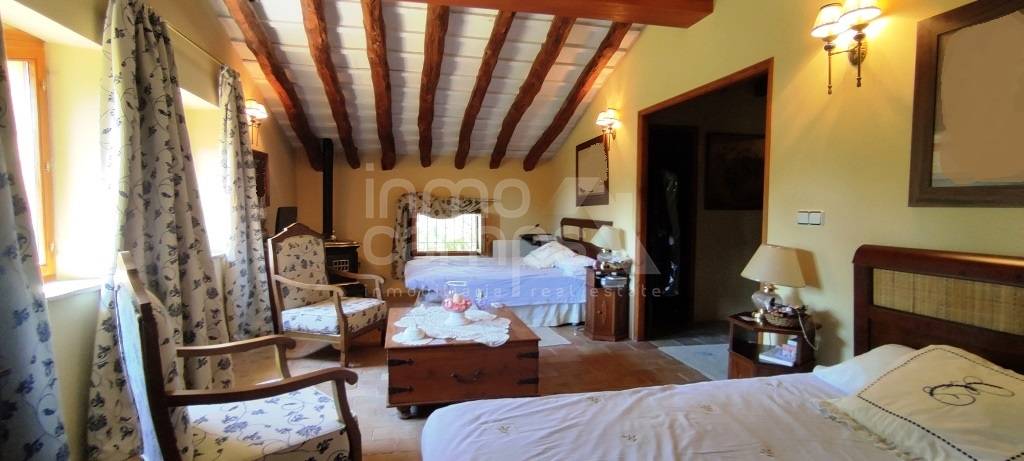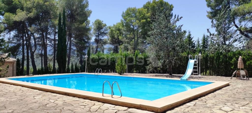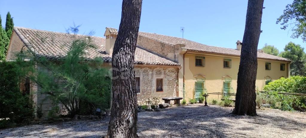 Espectacular finca de estilo sencillo y tradicional en un entorno maravilloso, a los pies de la Sierra de Mariola y con excelentes vistas al paraje natural de la Fuente Roja. Situada a menos de 6 km de Alcoy, 45 min de la costa y 60 min de Alicante y Valencia. Sobre una parcela de 9.914 m² se encuentra completamente vallada y dispone de puerta de acceso automatizada. El jardín se encuentra perfectamente ornamentado y distribuido, cuenta con arbolado decorativo, pinar, setos, plantas autóctonas y zonas ajardinadas. Dispone de alumbrado exterior y un sistema automatizado de riego, por lo que no tendrá que preocuparse mucho de su mantenimiento. Amplio aparcamiento y caminos pavimentados de piedra. Como anejos, la propiedad cuenta con una ermita, trastero, garaje y estanque. Preciosa piscina privada de 16 x 8 metros completamente reformada, dispone de sistema de depuración y amplias zonas de esparcimiento alrededor. La finca se encuentra construida en varias plantas, en las cuales encontramos dos viviendas independientes, zona de almacenes y antiguas caballerizas, en total la superficie construida es de 1.458 m² construidos. En la parte frontal de la casa principal, cuenta con un amplio porche donde podrá disfrutar del fresco o el sol según convenga, así como leer un libro, estudiar, hacer deporte, yoga, teletrabajo, tomarse su café, desayuno, comida y cenas. El interior del hogar es tradicional y muy acogedor. Accedemos desde el porche delantero al hall de entrada, amplio salón comedor de verano con chimenea, destaca por sus altos techos y las impresionantes vigas de madera que lo soportan. Dispone de cocina y aseo de cortesía. Accedemos al interior de la casa principal a través del amplio zaguán de entrada, el cual nos invita a pasar a la zona de estar con chimenea. Cuenta con un amplio comedor con un precioso mural decorativo en paredes y techo. Amplio open plan comedor cocina con salida a la terraza privada, despesa y zona de lavado. La planta baja se completa con despacho, aseo de cortesía, dormitorio y ropero. La planta primera se distribuye en amplia zona de estar, desde la que se accede a la zona privada de invitados, la cual tiene 3 dormitorios y baño. La zona familiar, consiste en despacho, 2 dormitorios dobles con baño en suite y vestidor, y el dormitorio principal con baño en suite y doble vestidor. En la planta inferior, encontramos las antiguas caballerizas y zona de bodega. La vivienda auxiliar de invitados, cuenta con 3 dormitorios, 2 baños, salón comedor con estufa de leña, cocina y patio interior. El resto de construcciones anejas, se destina a almacenes y garaje. Dicho espacio, tiene gran potencial para habilitarse fácilmente como más espacio habitable si se requiere. La finca cuenta con agua, luz, agua de nacimiento, calefacción a gasoil e internet. Excelente ubicación, con vecinos todo el año, acceso completamente asfaltado y perfecto estado de conservación.