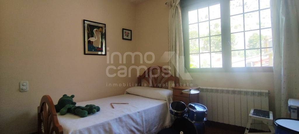 - Espacios bien distribuidos: Consta de 4 habitaciones dobles, una amplia cocina independiente con vistas al pueblo y un luminoso salón comedor con chimenea y vistas panorámicas.