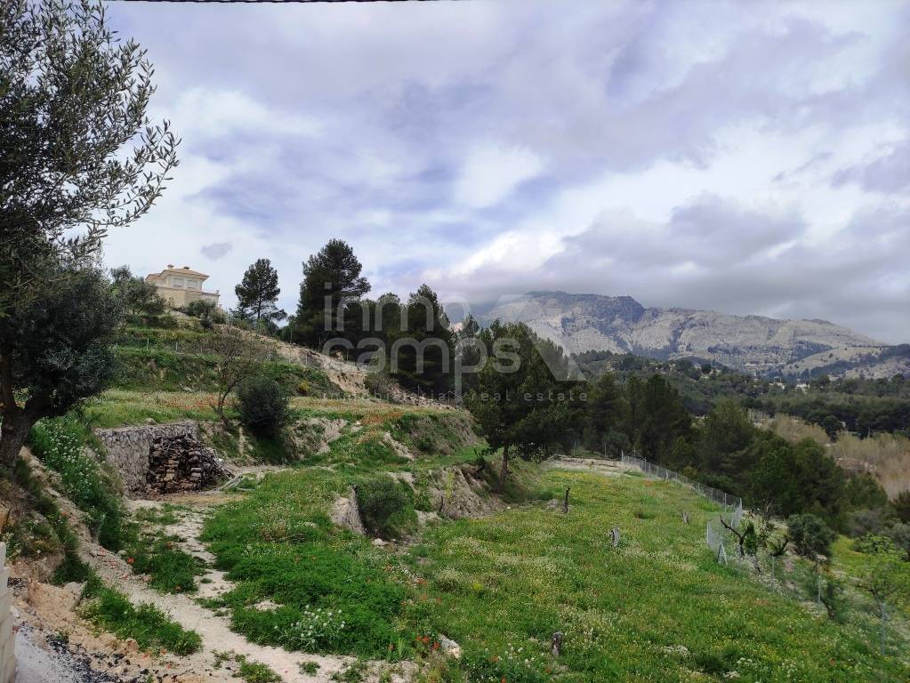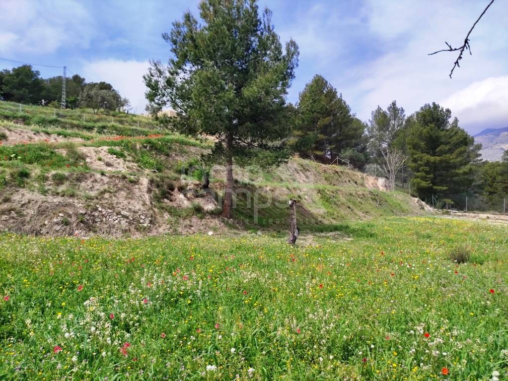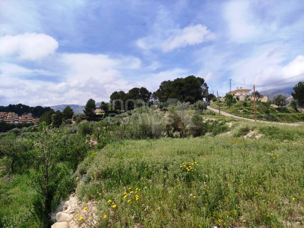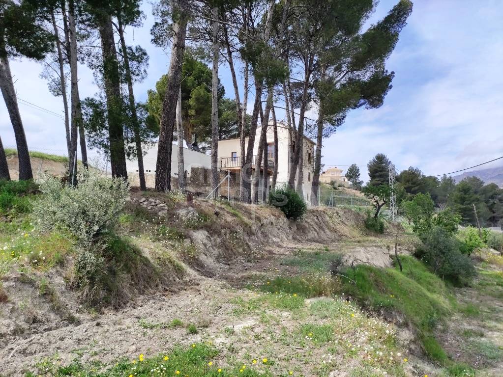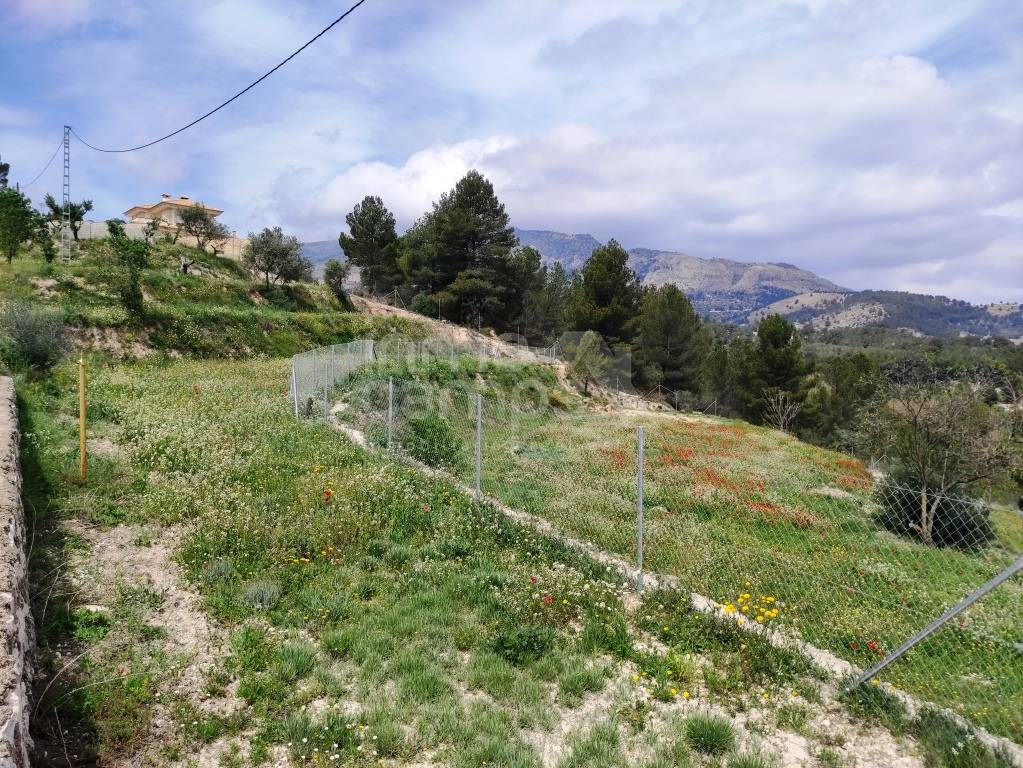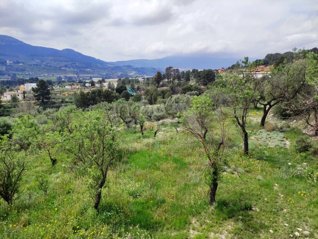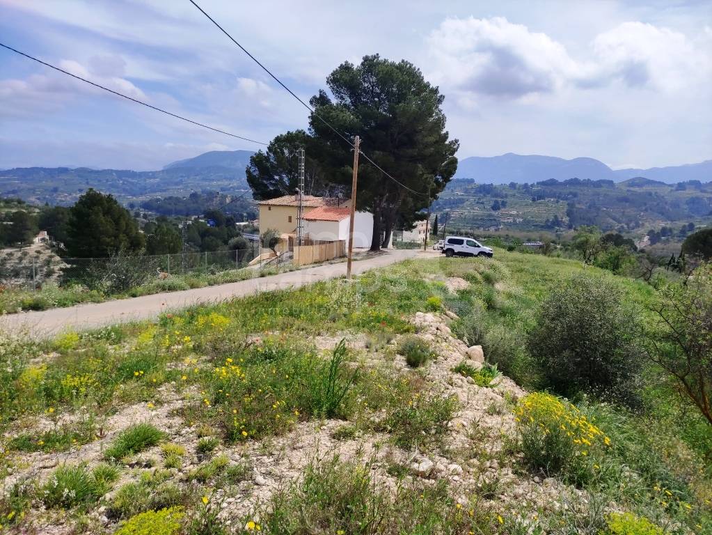 El terreno de 29.933 m² está completamente vallado y rodea la casa principal, con acceso automatizado, cultivos de olivos y almendros, y vistas despejadas al paisaje montañoso de la comarca del Comtat. También dispone de una construcción adosada que requiere reforma, ofreciendo aún más posibilidades.