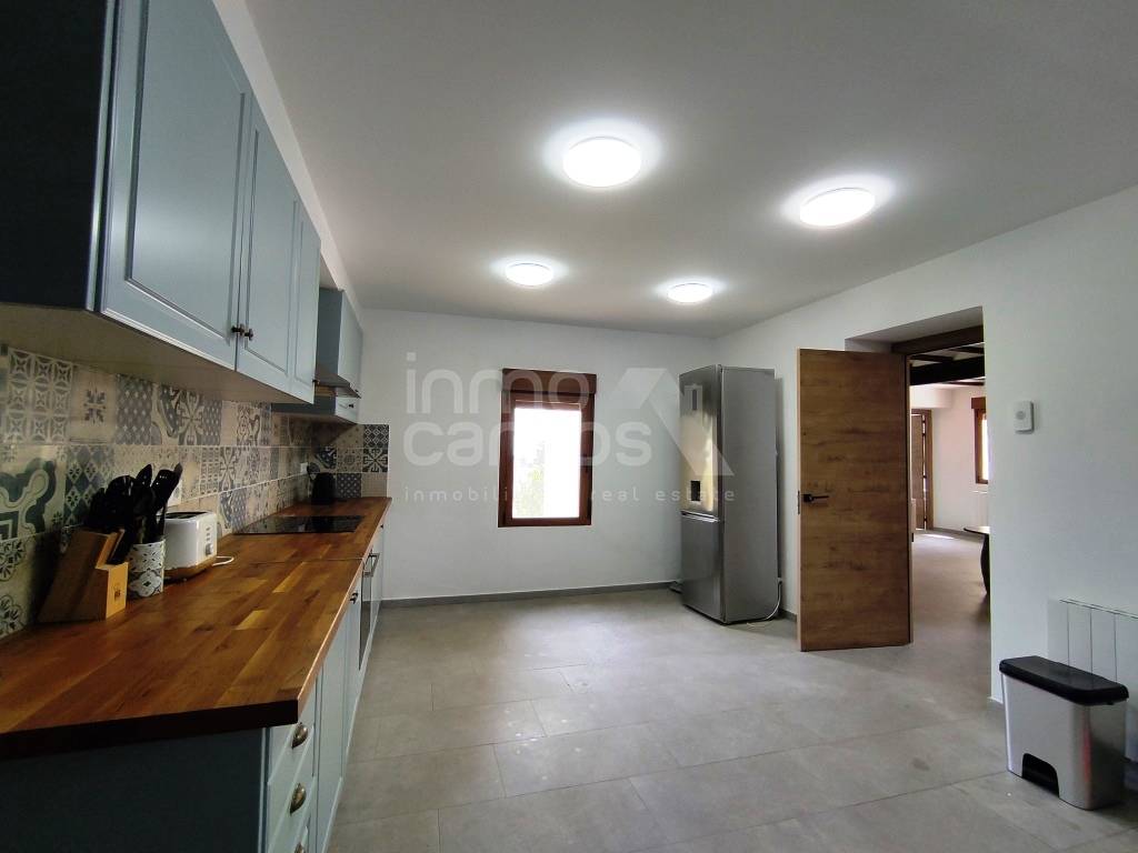 Con 335 m² construidos y completamente reformada en su interior, la vivienda ofrece amplios espacios llenos de luz natural, techos altos y detalles rústicos cuidadosamente conservados. Dispone de dos accesos independientes y dos escaleras internas, lo que permite dividir la casa en dos unidades, ideal para rentabilizar la inversión como alojamiento rural.