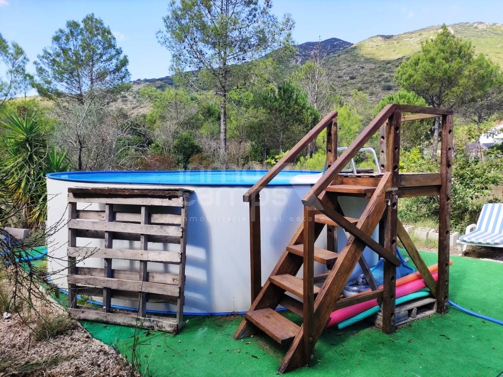La propiedad cuenta además con garaje cerrado, barbacoa cubierta, trastero, zona chill-out y piscina desmontable, lo que la convierte en un espacio versátil para el ocio y el descanso. Está equipada con agua, internet, electricidad mediante placas solares y generador auxiliar, y se encuentra parcialmente vallada con puerta de acceso, en muy buen estado de conservación.