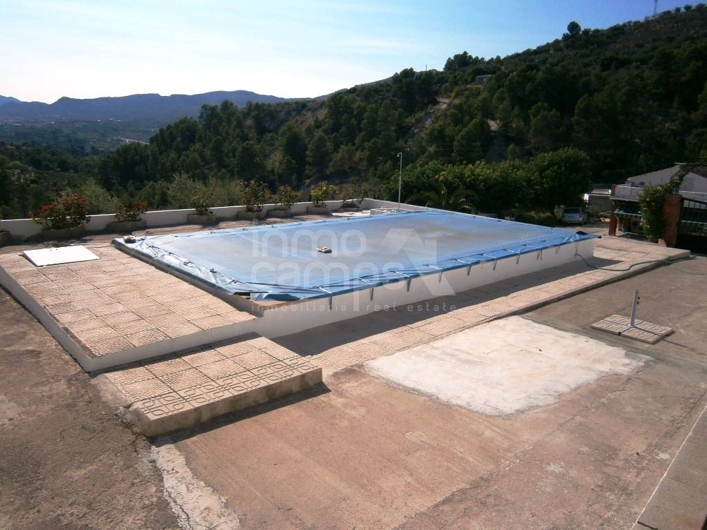 Prachtig gepresenteerd landhuis van 110m² gebouwd, gelegen op slechts 10 minuten rijden van het dorp Millena en 8 minuten rijden van Cocentaina, de dichtstbijzijnde stad, bestaande uit 2 slaapkamers, familiebadkamer, aparte keuken, grote woon-eetkamer met open haard en lucht airconditioning, ingevoerd via een groot terras op het zuiden. Het perceel van 25.500 m² met olijfbomen en biedt een prachtig uitzicht op de bergen en een groot zwembad. Naast een kleine casita, die kan worden omgebouwd tot een zelfstandig studio-appartement, is er ook een grote opslagwerkplaats. De accommodatie is voorzien van leidingwater en elektriciteit. Dit is een charmant landhuis op een zeer gewilde locatie, gepresenteerd met een hoge standaard van binnen en van buiten.