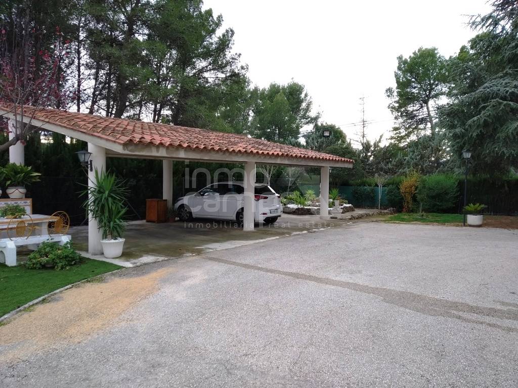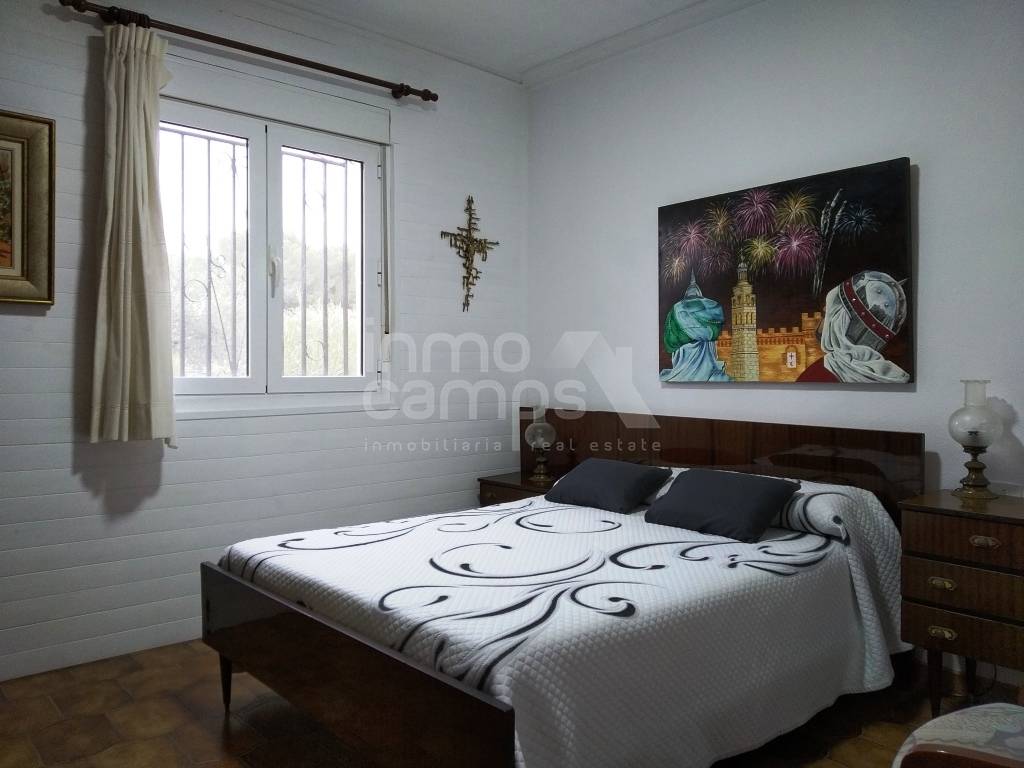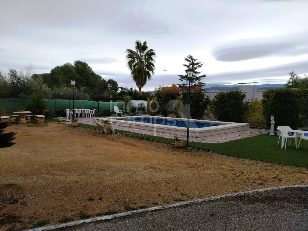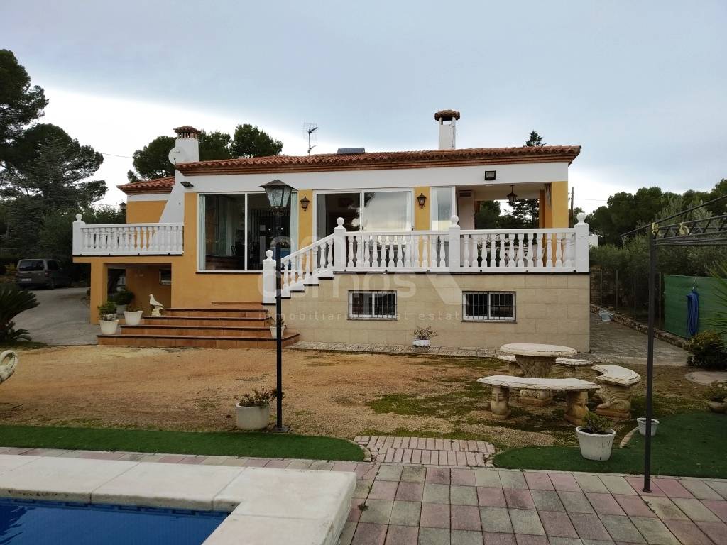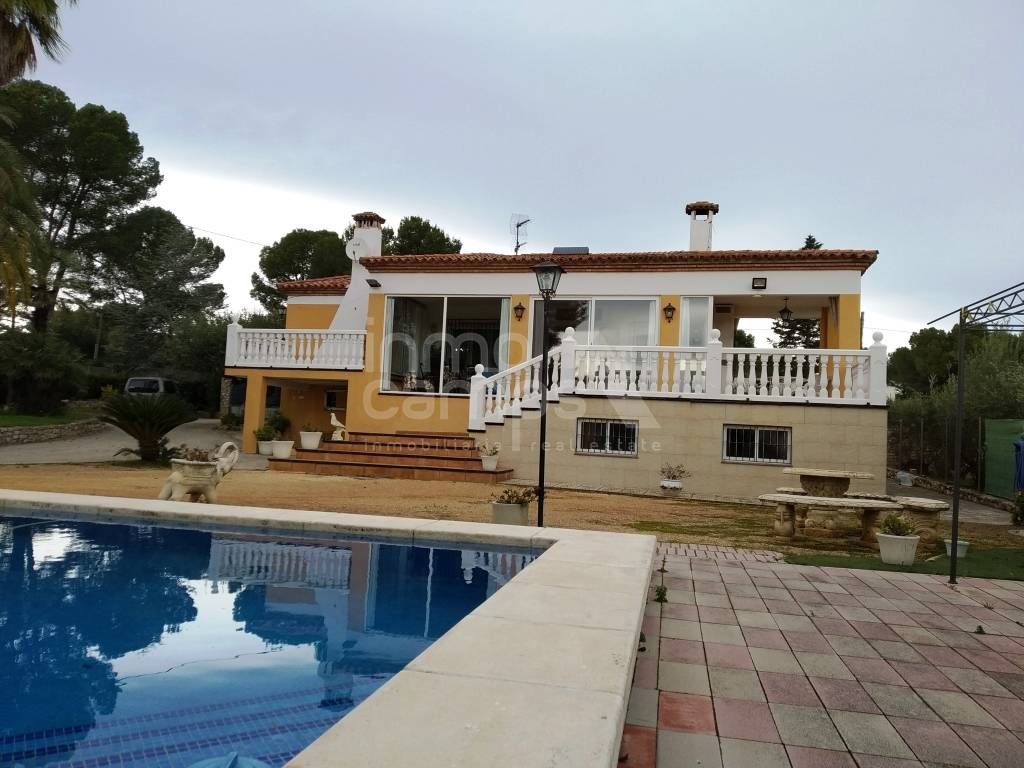 Landhuis in Ontinyent van 255m² gebouwd op twee niveaus. De begane grond bestaat uit een terras op het zuiden aan de voorzijde, dat leidt naar de grote eetkamer en woonkamer met open haard en airconditioning, 3 tweepersoonsslaapkamers, familiebadkamer, toilet en ingerichte keuken. De benedenverdieping bestaat uit twee tweepersoonsslaapkamers, een grote keuken, een enorme eetkamer en een zithoek. Omheind en omheind perceel van 1.744 m² met een selectie van decoratieve bomen, het pand is compleet met een mooi privézwembad, grote carport en buitentoilet. Deze eigenschap heeft leidingwater en elektriciteit. Uitstekende locatie op een iets verhoogde positie, met een prachtig uitzicht over de vallei. Deze eigenschap zou een ideaal familie- of vakantiehuis zijn, op deze rustige locatie, met een goede toegang tot de weg.