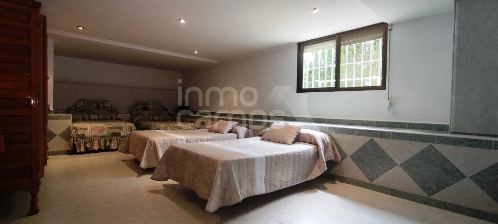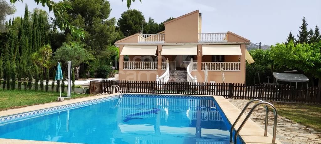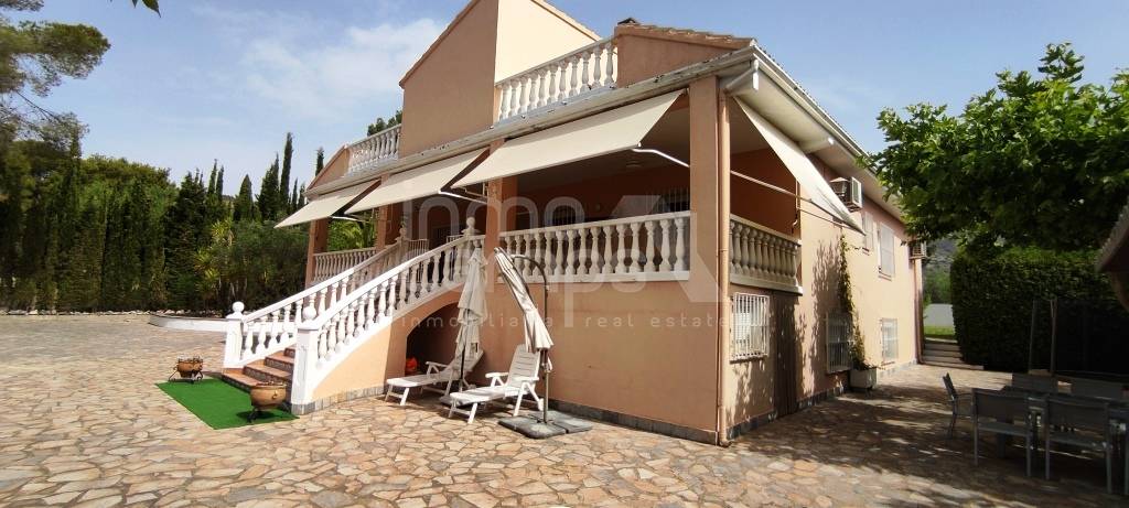 Prachtige villa met prachtig uitzicht op de bergen, gelegen op 5 minuten rijden van Muro de Alcoy, de dichtstbijzijnde stad en 45 minuten van de kust en luchthavens. Het pand heeft 343 m² op twee niveaus plus de zolderruimte op een vlak omheind en omheind perceel van 2.661 m² met een mooie tuin vol schaduwbomen, struiken en inheemse planten. De ruime accommodatie bestaat op de begane grond uit een inkomhal, 2 tweepersoonsslaapkamers, familiebadkamer, een hoofdslaapkamer met eigen badkamer, volledig ingerichte keuken met directe toegang tot het terras op het zuiden, grote woon / eetkamer met open haard en airconditioning. Boven heb je de lege canvas zolderruimte met 3 dakterrassen met prachtig uitzicht. In het souterrain heeft de woning 3 tweepersoonsslaapkamers, bijkeuken, technische ruimte en een enorme badkamer met ligbad. Buiten is het pand compleet met een zonnig privézwembad van 12x6m, een barbecue en een berging. Het profiteert van centrale verwarming op olie, airconditioning, internetverbinding, inbouwkasten, leidingwater en elektriciteit. Uitstekende locatie, met buren in de buurt, midden in de natuur en gemakkelijke toegang tot de A7.