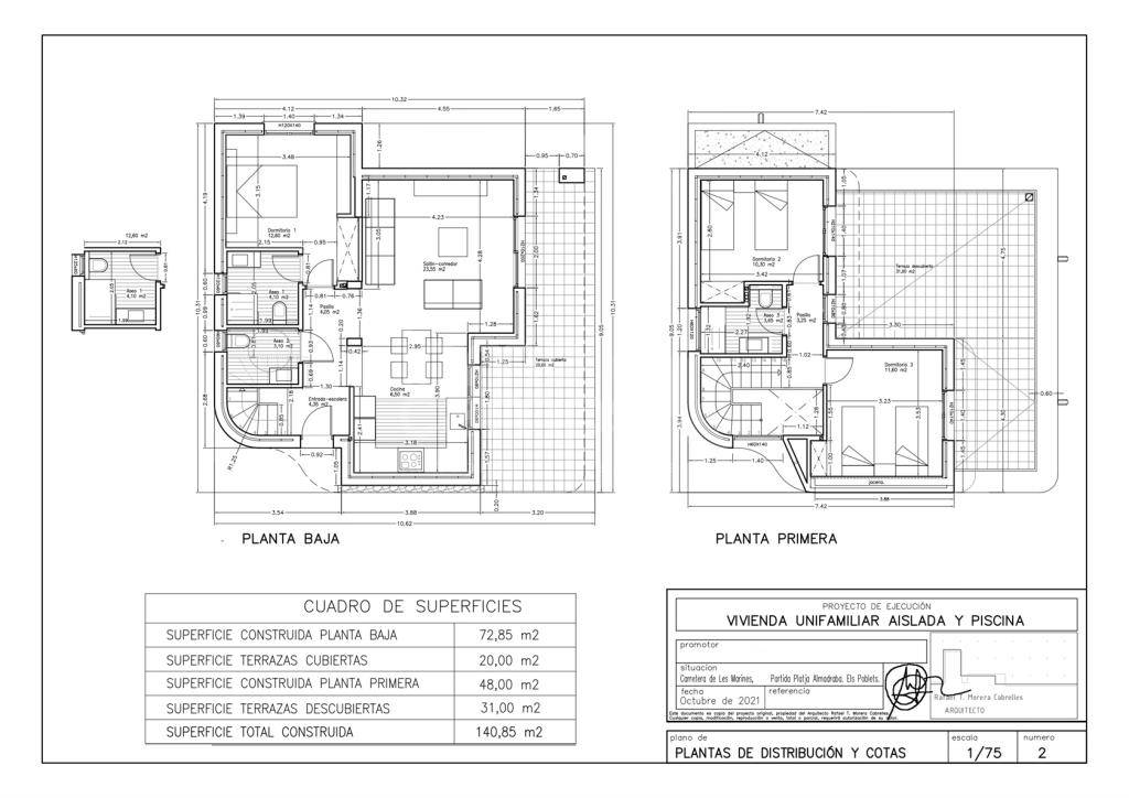 Deze villat beschikt over 3 ruime slaapkamers, 2 volledige badkamers en een gastentoilet. Op de begane grond vind je een lichte woon-eetkamer met een open keuken en directe toegang tot een spectaculaire 20 m² overdekt terras, perfect om te genieten van het mediterrane klimaat en heerlijke momenten met familie en vrienden. Er is ook een slaapkamer met en-suite badkamer voor optimaal comfort.