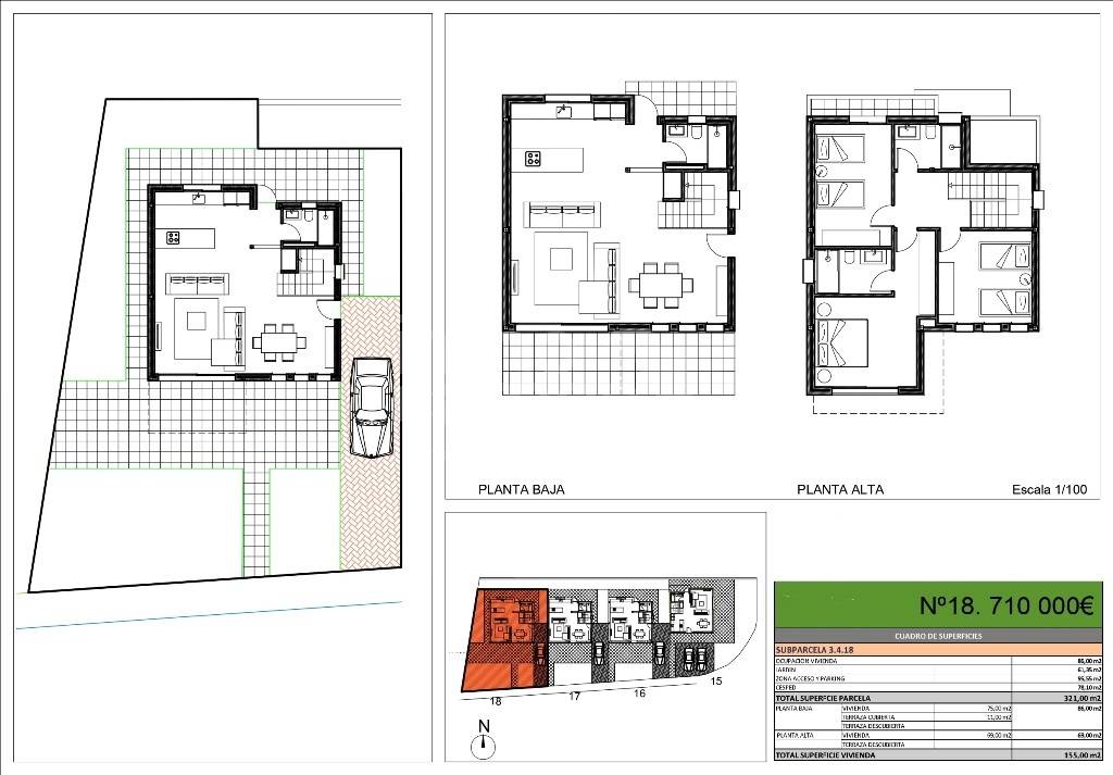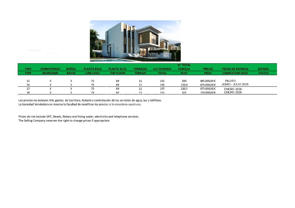 Deze prachtige woningen beschikken over 3 slaapkamers en 3 badkamers, met een bebouwde oppervlakte van 155 m² en percelen van 220 tot 321 m². Elke villa biedt een terras, tuin, parkeerplaats voor twee auto's en gemeenschappelijk zwembad. Gebouwd met hoogwaardige materialen voor maximaal comfort en moderne elegantie.