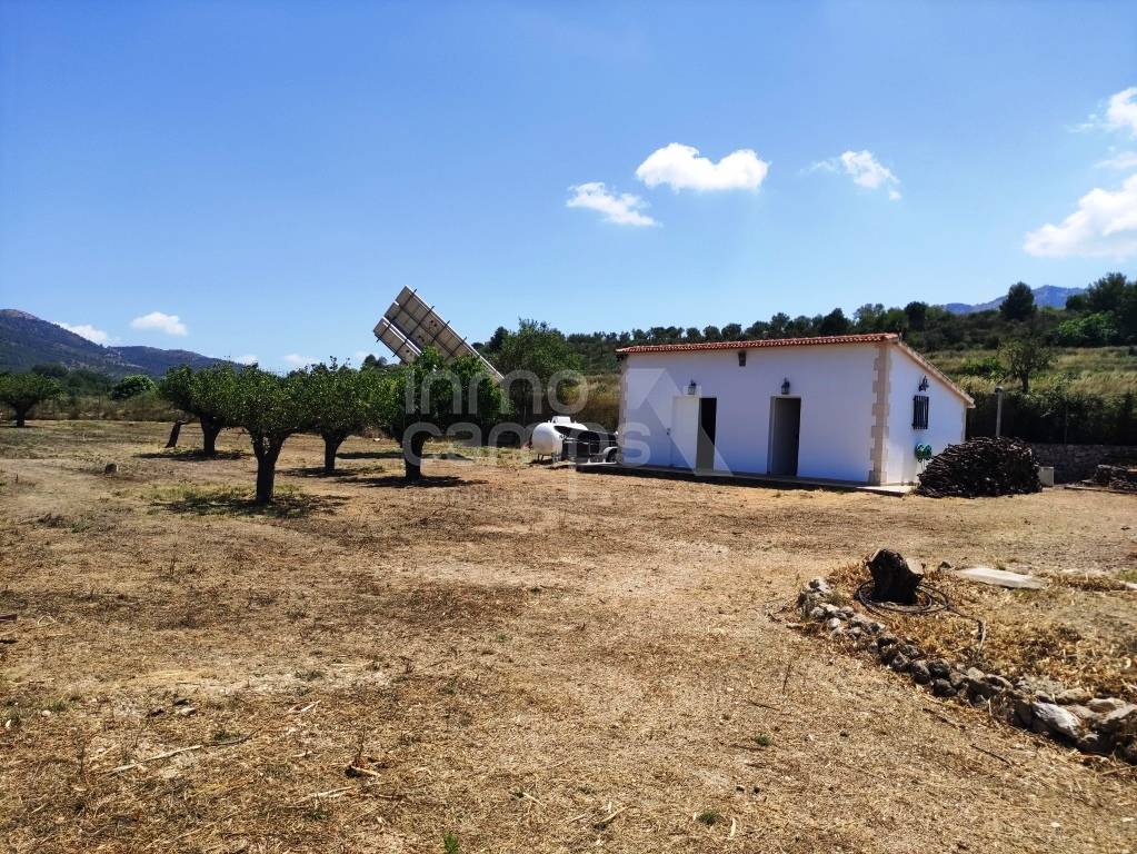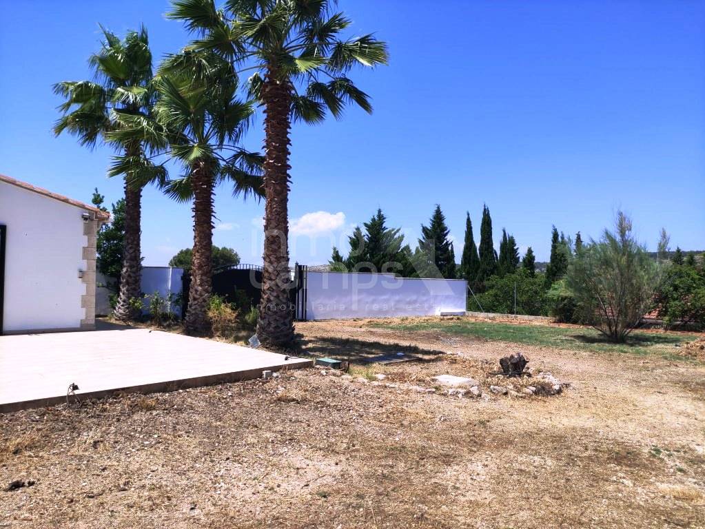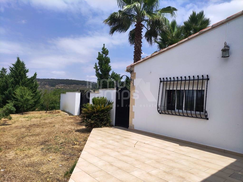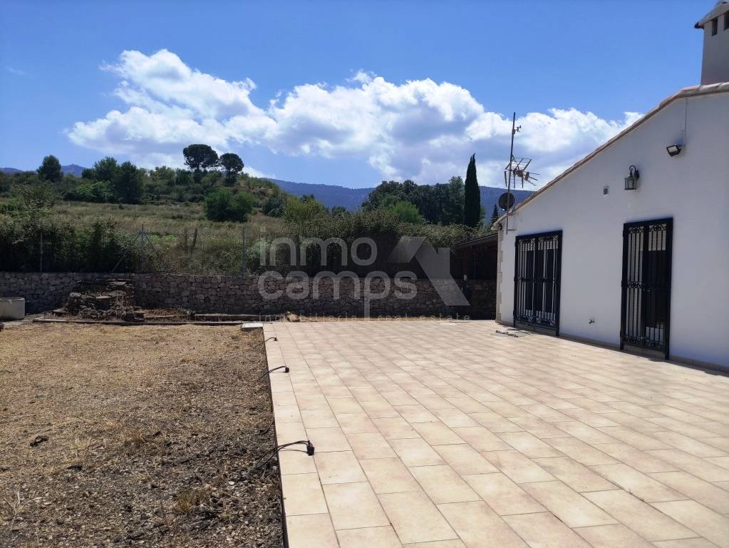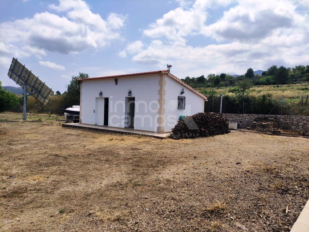 Het perceel van 2.077 m² is volledig omheind, met fruitbomen en veel privacy. Gelegen aan een geasfalteerde weg, zonder directe buren en met uitzicht op de Sierra de Mariola – een ideale plek om tot rust te komen.