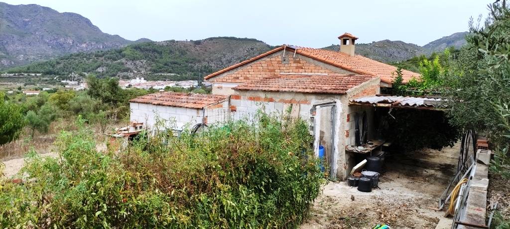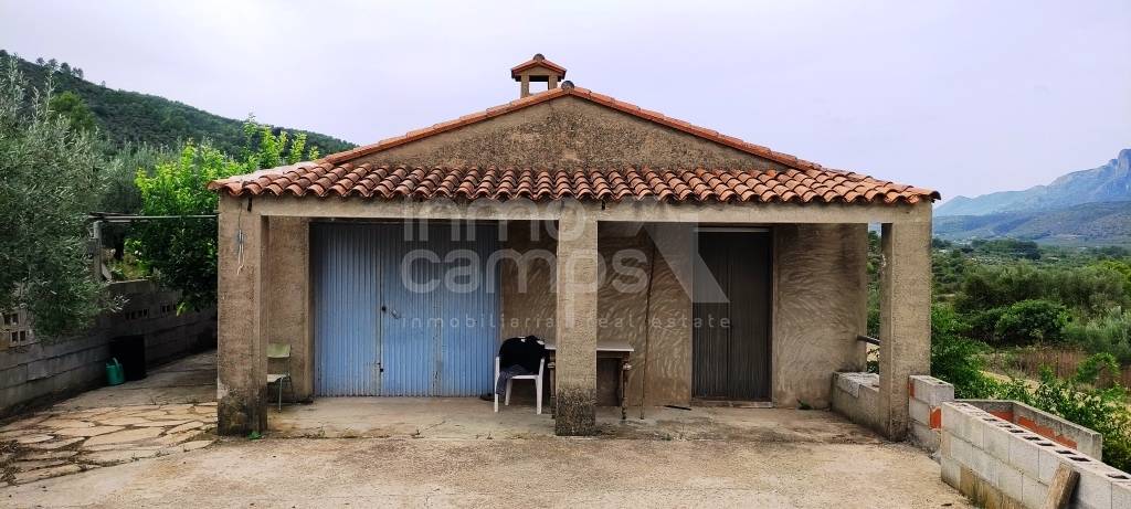 Country house just 1 km outside the village of Alpatró in Vall de Gallinera, with all it's amenities. The property has a surface of 81m² built, comprises of a bedroom, toilet, open plan kitchen lounge with fireplace, garage. Standing on a generous 2,672 m² flat land plot with olive and almond trees, the property is complete with a balsa. This property is serviced by mains water and fireplace. Excellent location with sun all day and tarmac access. The property is in need of internal decoration and furnishing, what an opportunity to purchase a potentially 2 bed with 2 bath country home in this very desirable location and put your own stamp on it, we would strongly recommend early viewing.