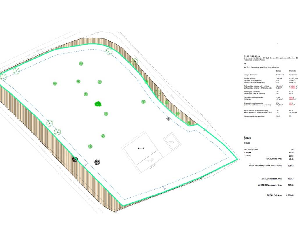 The flat plot allows for additional constructions, featuring a pool that's perfect for summer enjoyment. With water and electricity already connected and easy access via a paved road, this property provides a solid foundation for a renovation project tailored entirely to your needs.