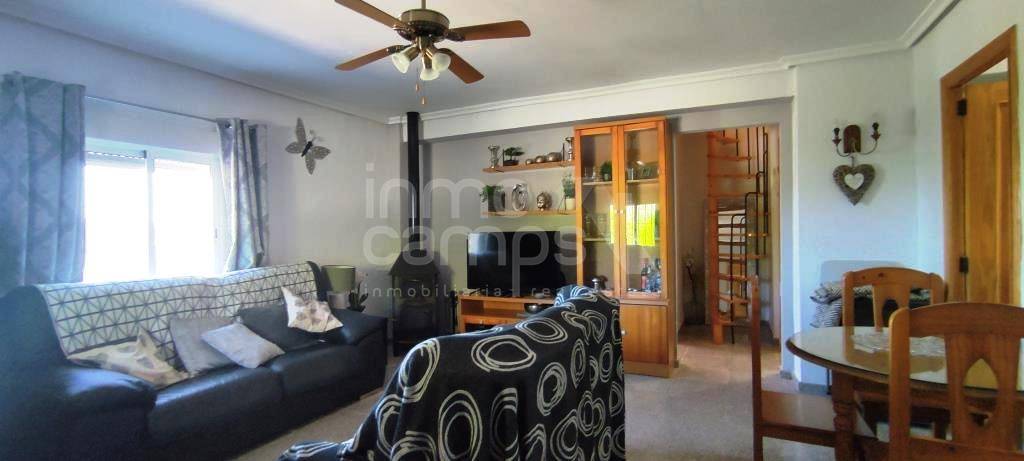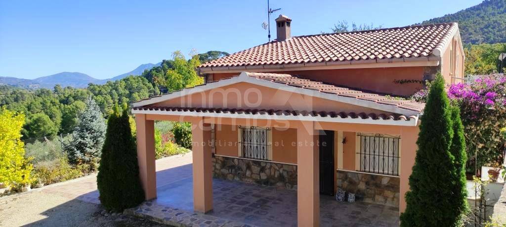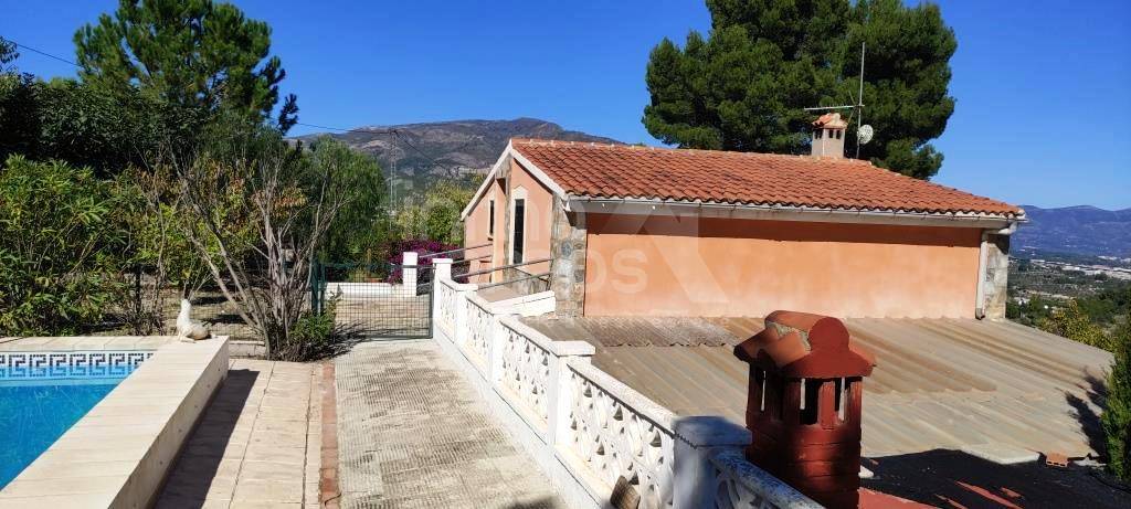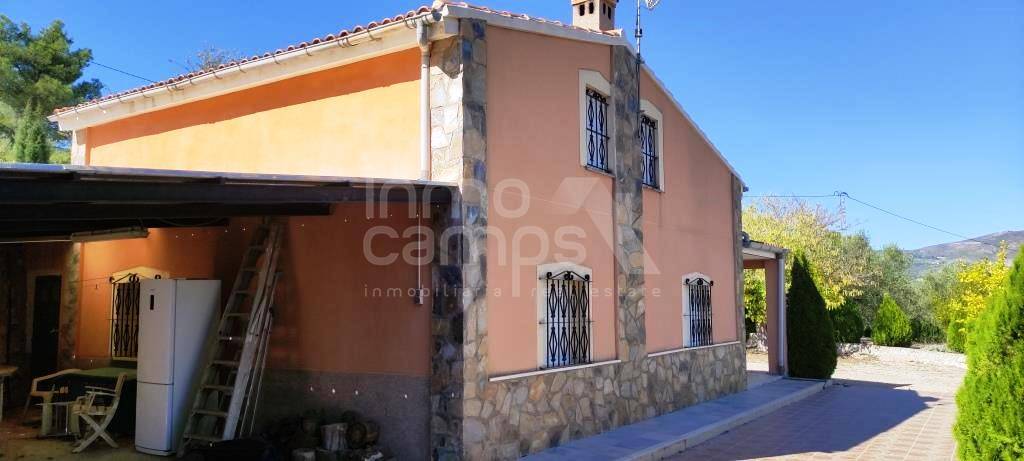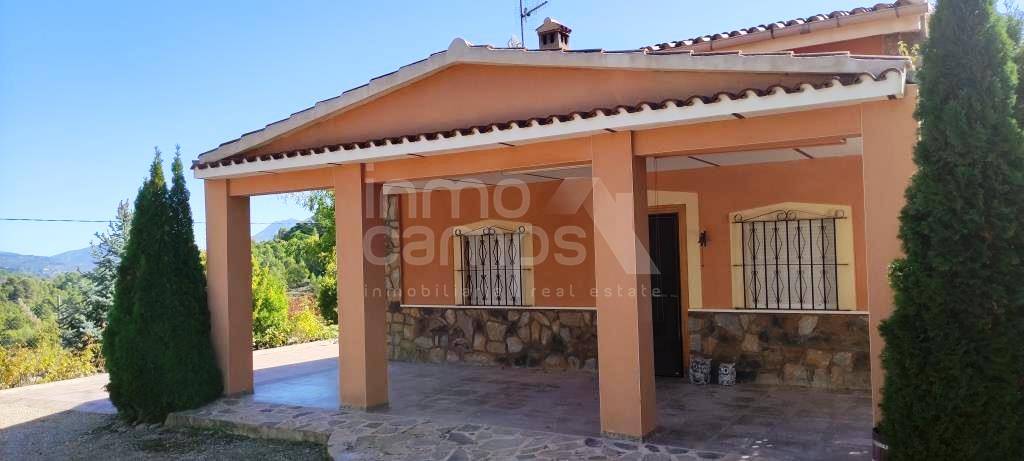 Beautiful two store country house of 109m² built, just 5km away from the market town of Cocentaina. The ground floor consists of 2 bedrooms, family bathroom, fitted kitchen, living / dining room with log burner stove. At the front of this property, there is a large covered terrace with stuning mountain views. The first floor has 3 bedrooms, toilet and storage area. The property is on a generous fenced and gated plot of 10,797m² with lovely filtered pool, storeroom, bbq area and carport. This property is serviced with log burner, water deposito, double galzed, mains water and electric. This is a charming country home in a very desirable location, presented to a high standard inside and out.
