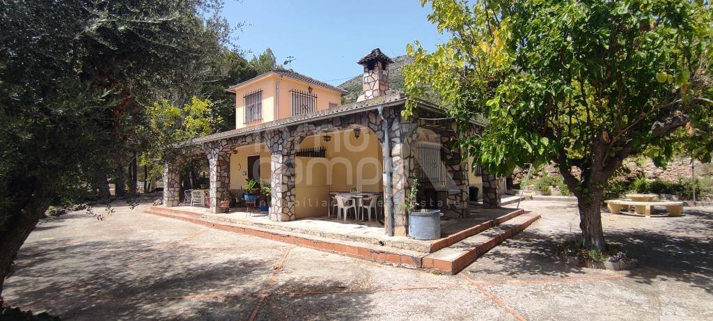 Beautifully presented country home, just 4km outside of the town of Muro de Alcoy, the 111 m² build comprises of entrance hall, 4 double bedrooms, family bathroom recently refurbished, fitted kitchen, large lounge/dining room with fireplace, complete with an open south facing covered front terrace and a roof terrace solarium. The flat fenced and gated 2,653 m² land plot, has a selection of olive & almond trees. Outdoors the property is completed with a lovely BBQ area, outside toilet, carport, storeroom and 12 x 6 swimming pool with sliding glass cover. The property is serviced by mains water and electricity, gas central heating, with internet availability and benefits from being only a 1 hour drive from both Valencia and Alicante airports. The property has scope for decoration improvements but has fabulous potential in it´s very desirable location, which must be viewed to be fully appreciated.
