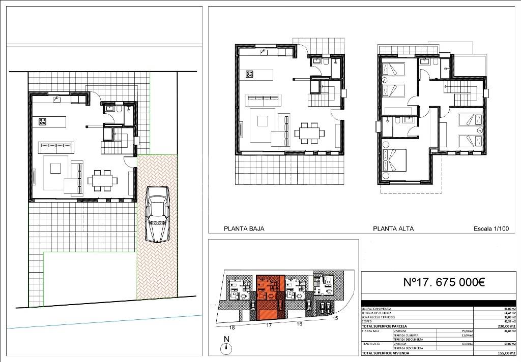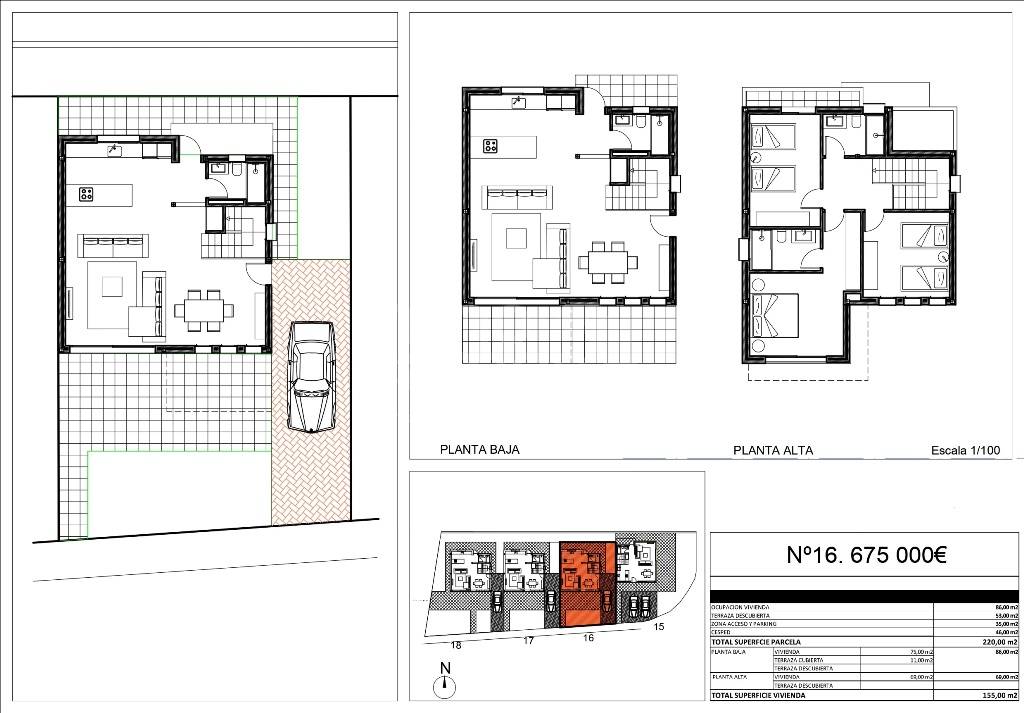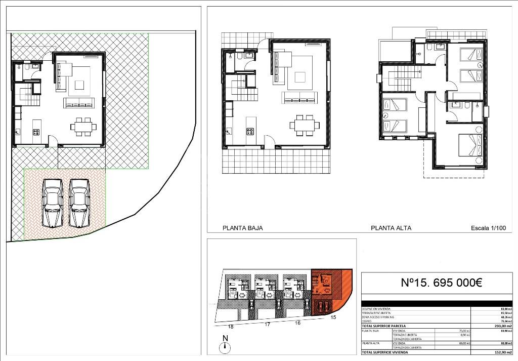 These stunning properties feature 3 bedrooms and 3 bathrooms, with a built area of 155 m² and plots ranging from 220 to 321 m². Each villa offers a terrace, garden, parking for two vehicles and community pool. Built with premium quality materials to ensure maximum comfort and style.